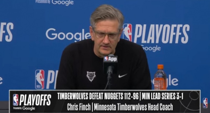 直播吧4月26日讯NBA季后赛首轮G4,丛林狼主场112-96打败掘金,大比分3-1夺得赛点。赛后克里斯·芬奇继承了媒体采访,以下为采访全文。